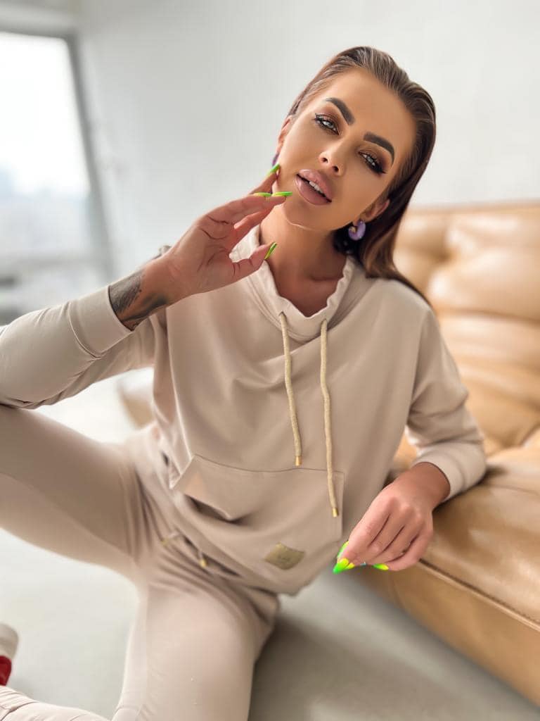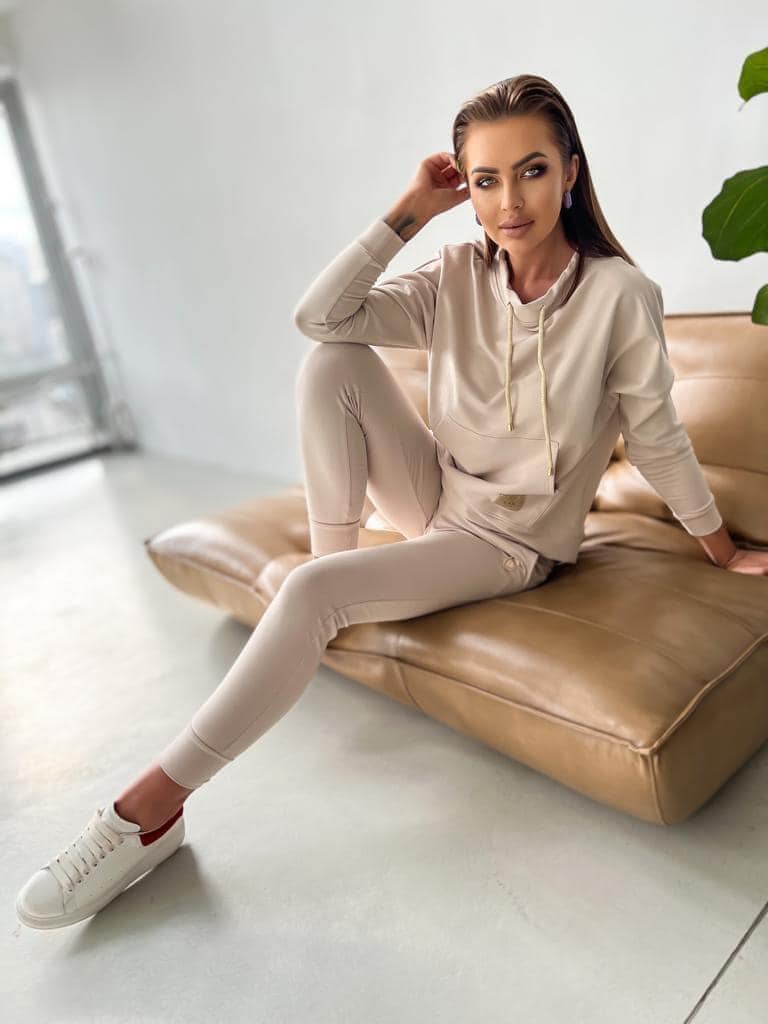 NIEZWYKLE ORYGINALNY I EKSKLUZYWNY dres bawełniany AMY Polskiego Producenta LUISE w pięknym kolorze eleganckiego beżu ze złotymi dodatkami