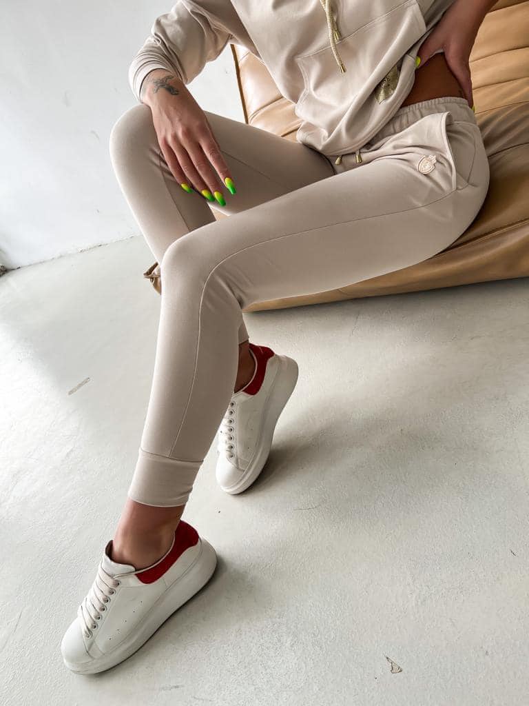 Spodnie logowane, w pasie na gumie z kieszeniami. Wyjątkowo zgrabny model!
