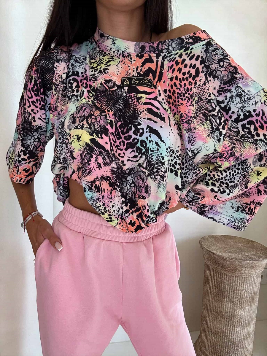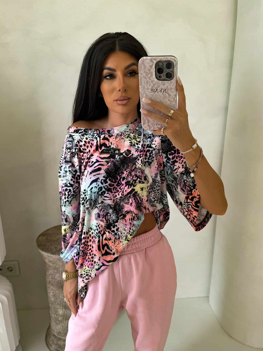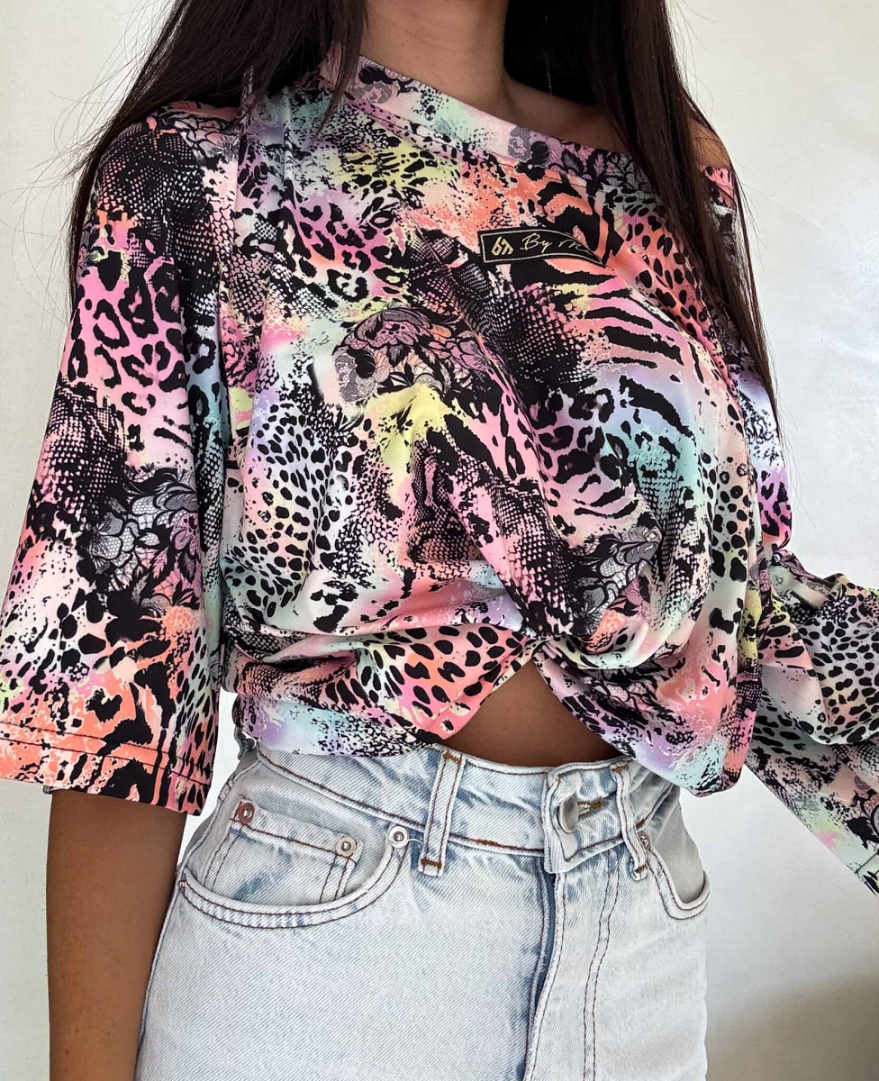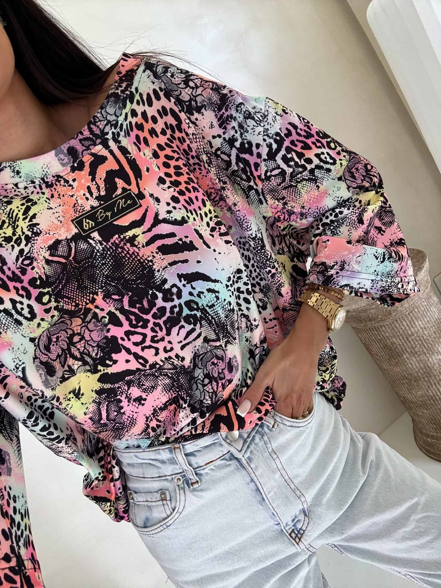 Bluzka marmaris print panterka – czarno-multi by me