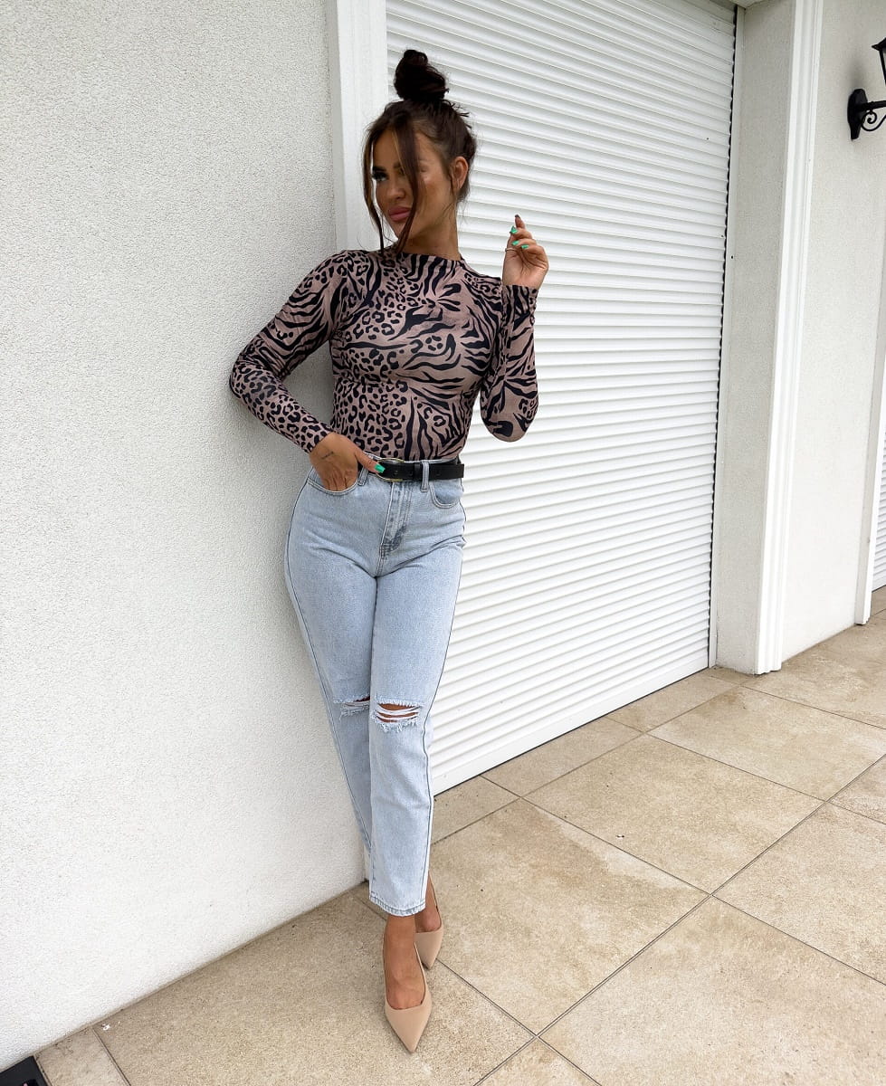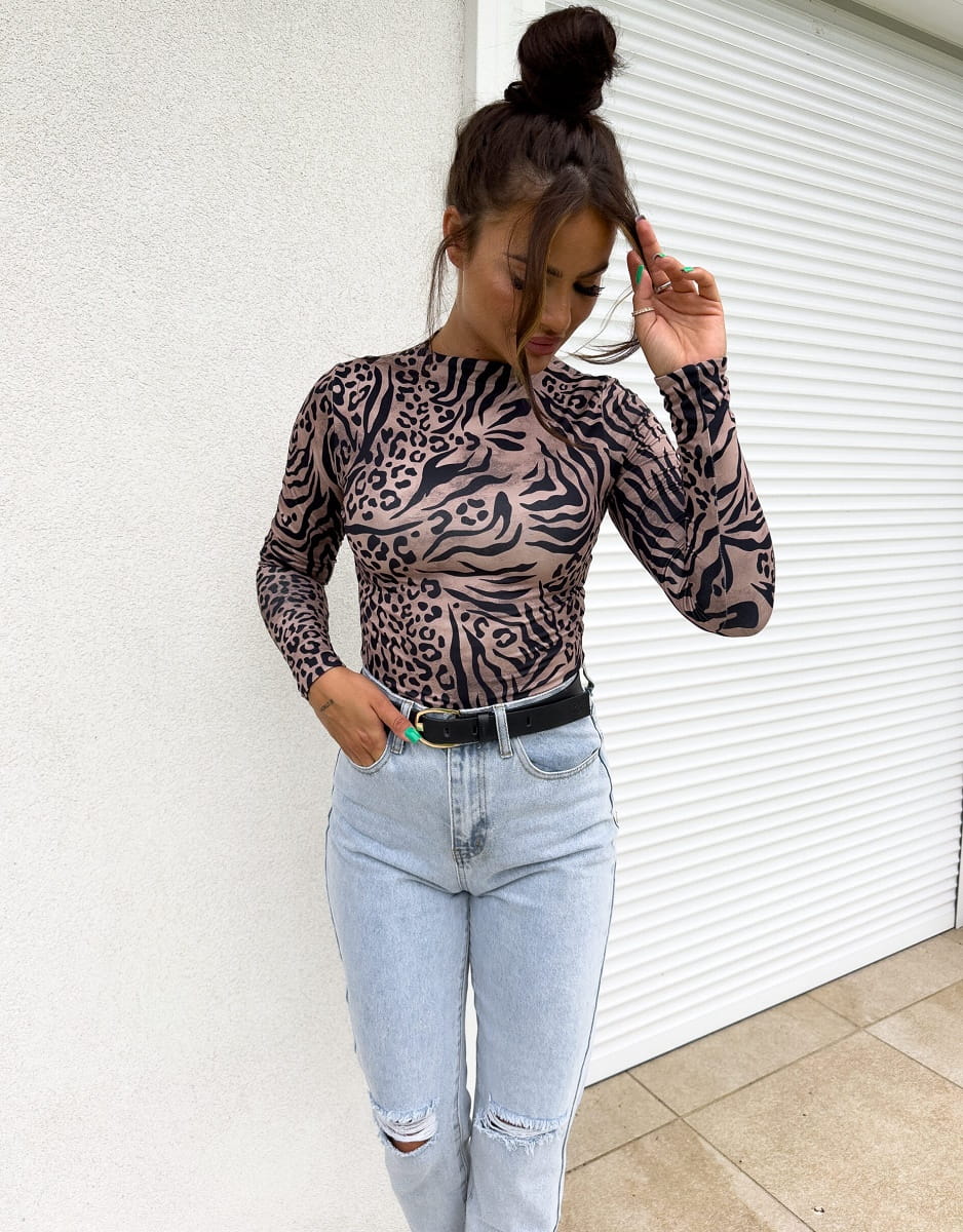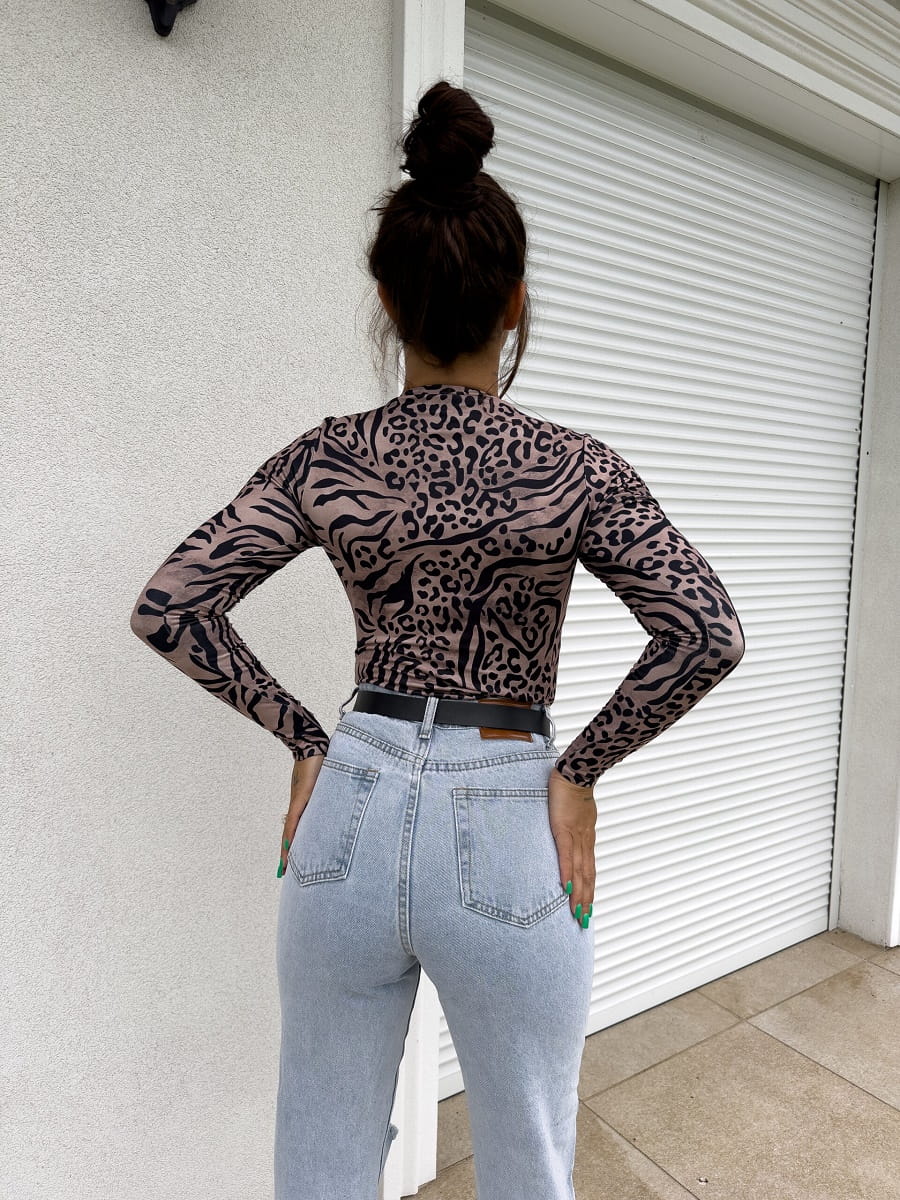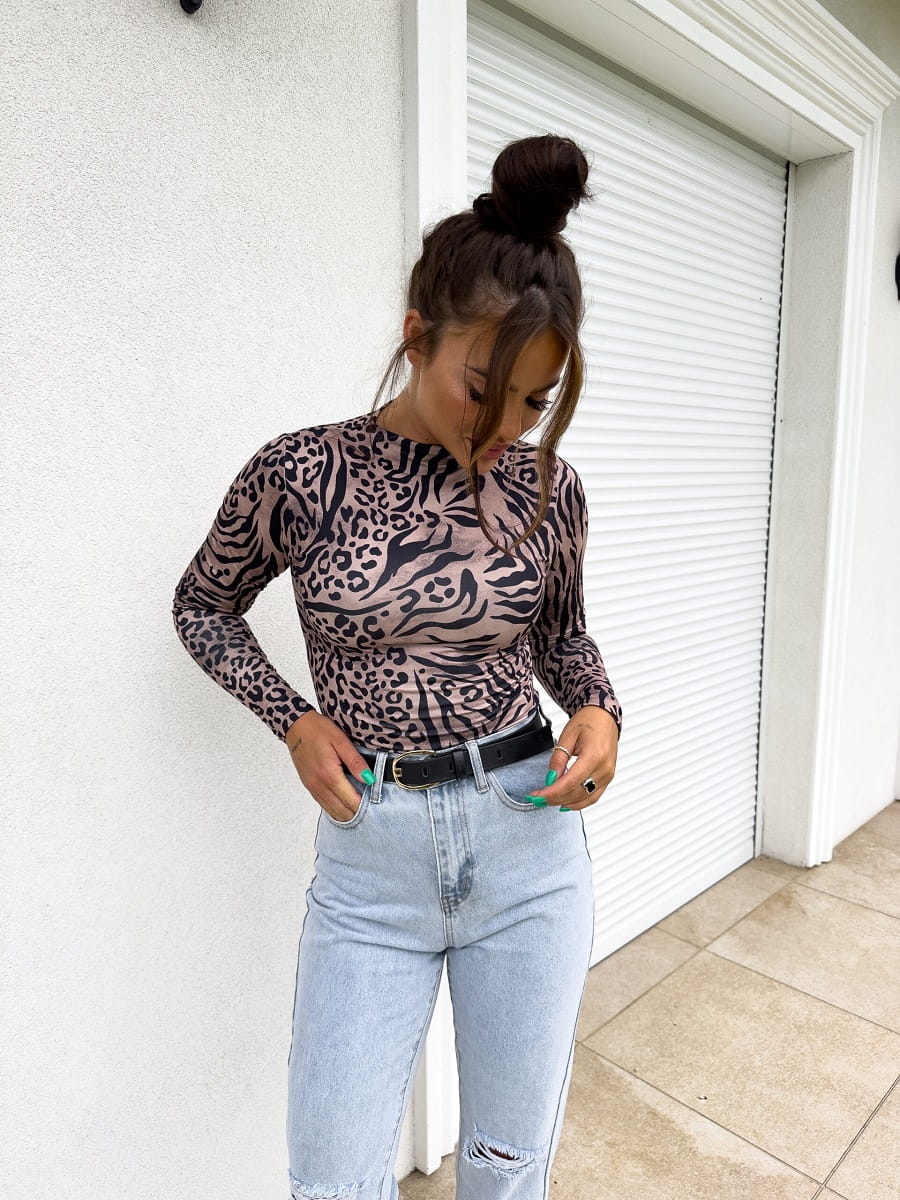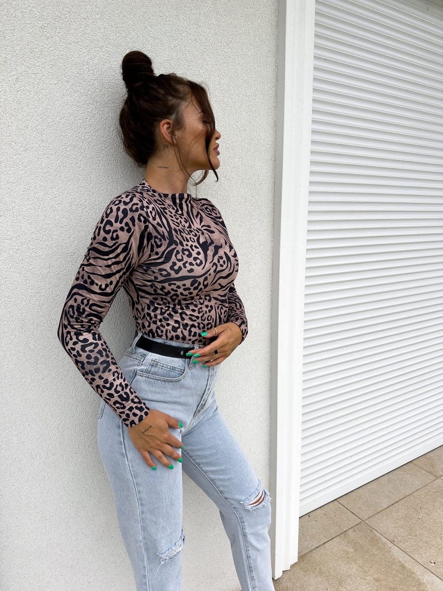 Bluzka SKIN o dopasowanym kroju sprawdzi się jako baza do wielu różnorodnych stylizacji. Wykonana z bardzo delikatnej miłej w dotyku siateczki. Przód i tył z delikatną podszewką, dzięki której nic nie prześwituje. Charakteryzuje się rękawem typu long sleeve. Jej krój zagwarantuje komfort i wygodę noszenia. Delikatna stójka.