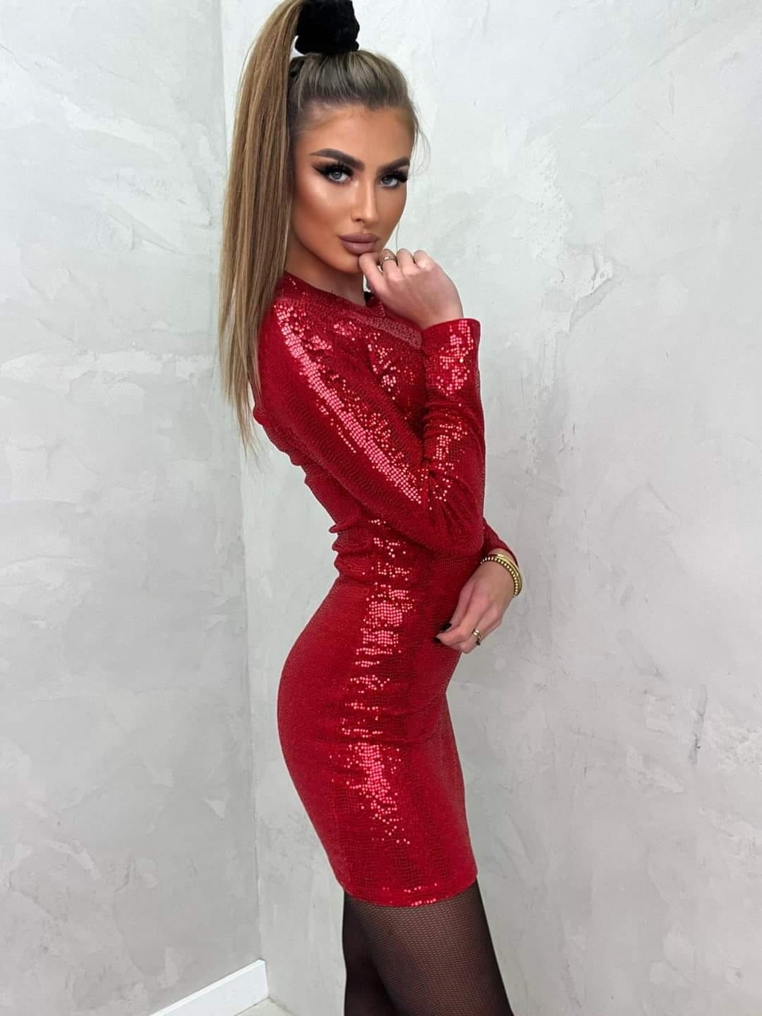 Niezwykle piękna i seksowna mini sukienka z dużą ilością nakrapianych błyszczących kółeczek - pięknie się mieni i zapewni oślepiający błysk oraz niepowtarzalność