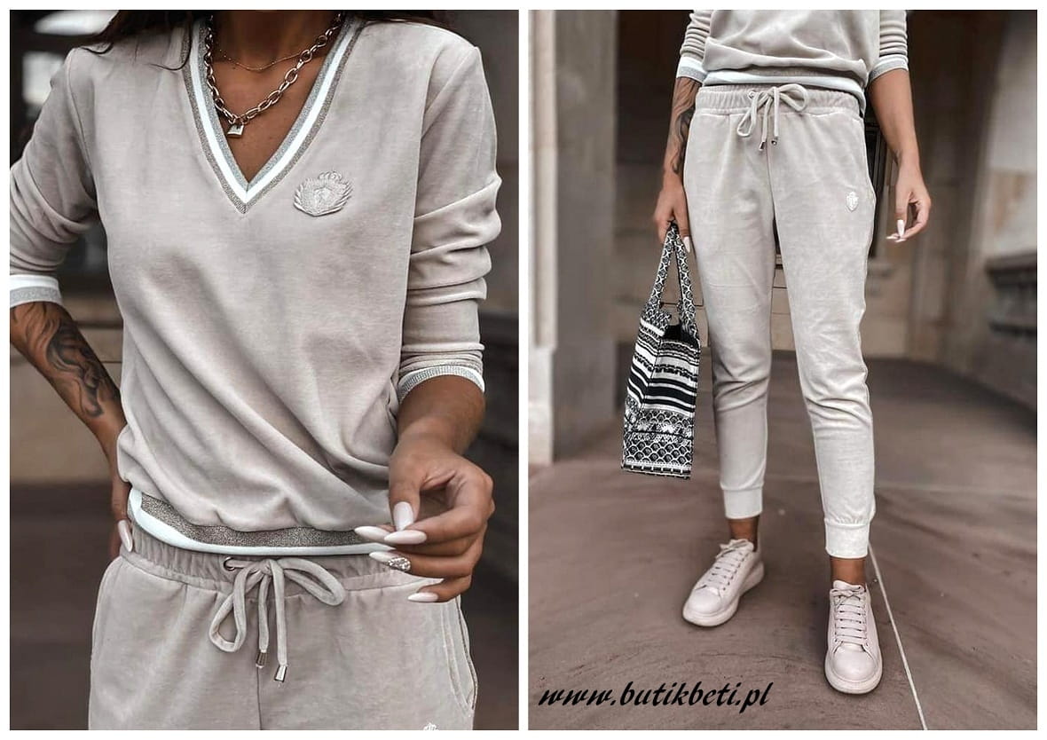 Ekskluzywna welurowa bluza dresowa luise beżowa