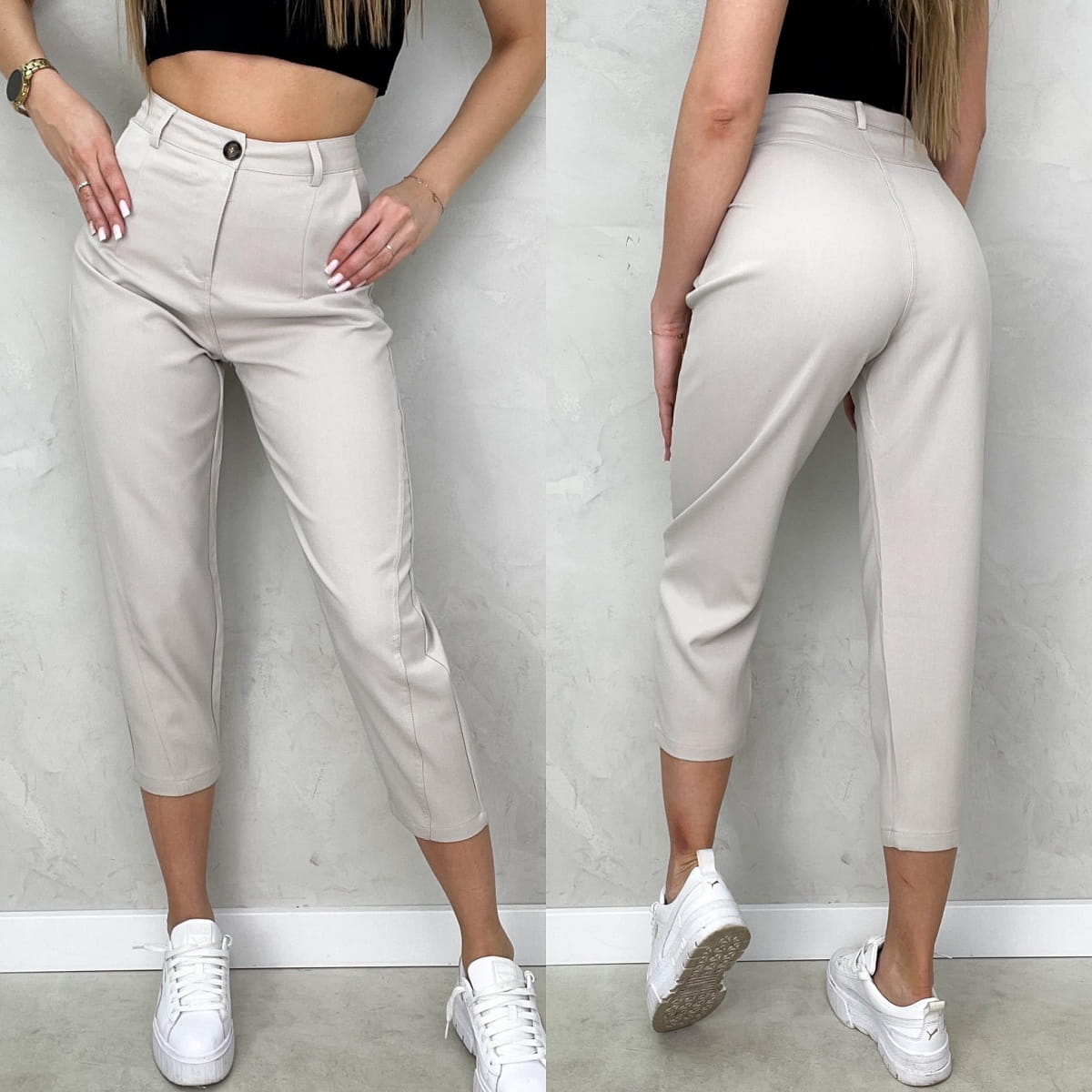 Eleganckie spodnie materiałowe freesia 7/8 beżowe l186