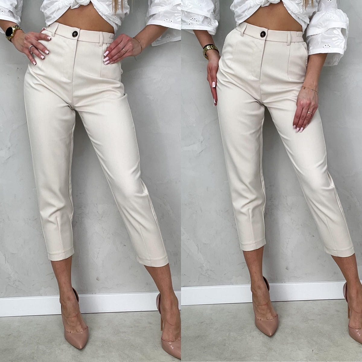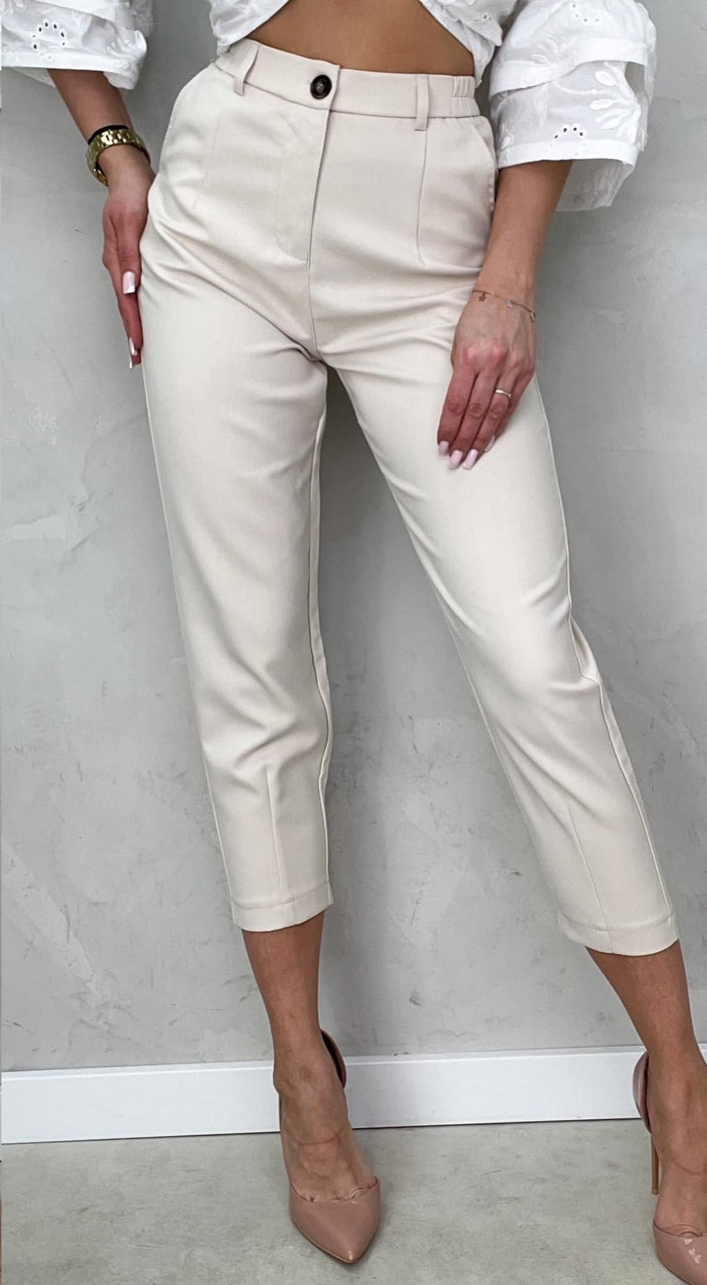 Eleganckie spodnie materiałowe freesia 7/8 jasny beż l188