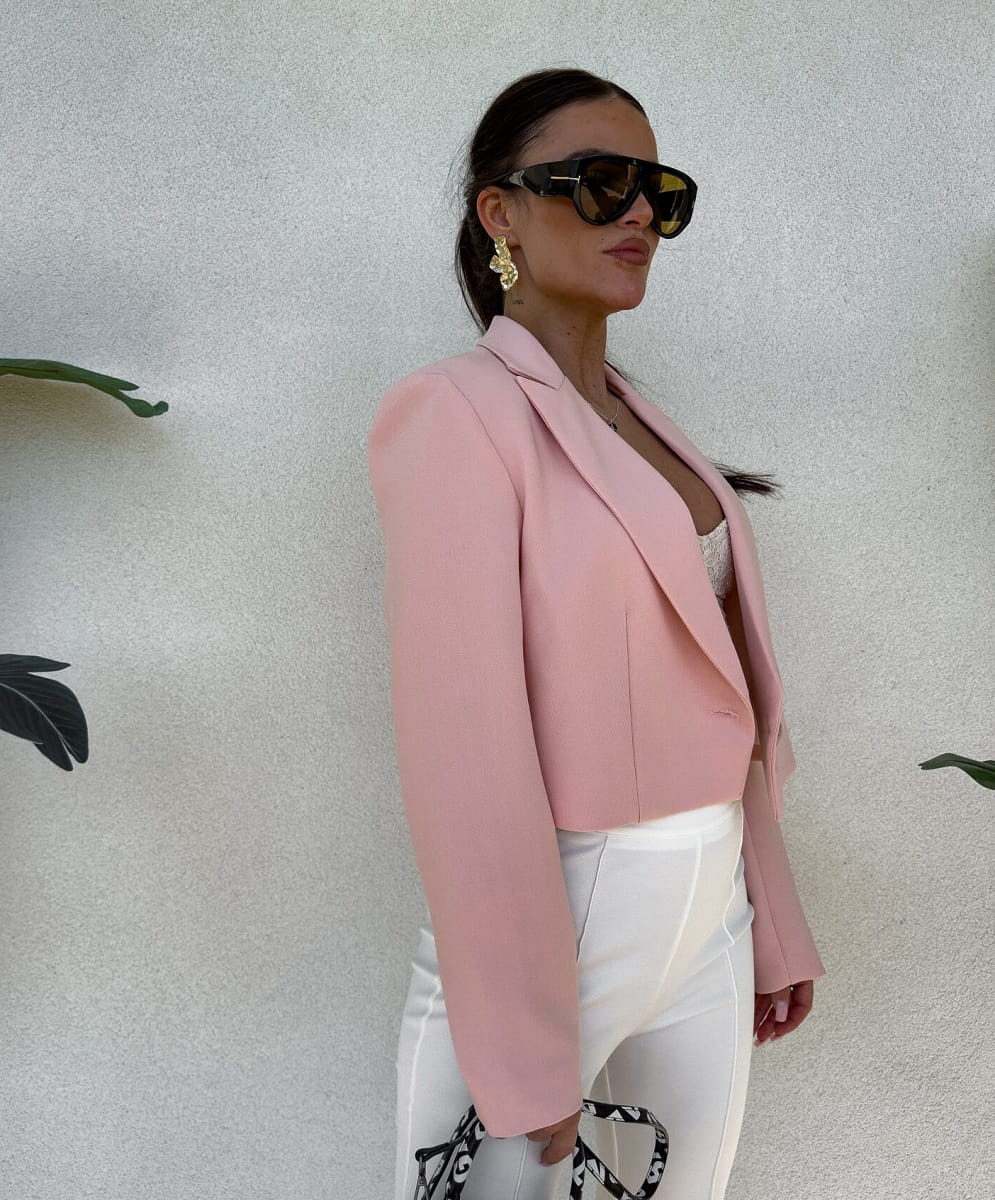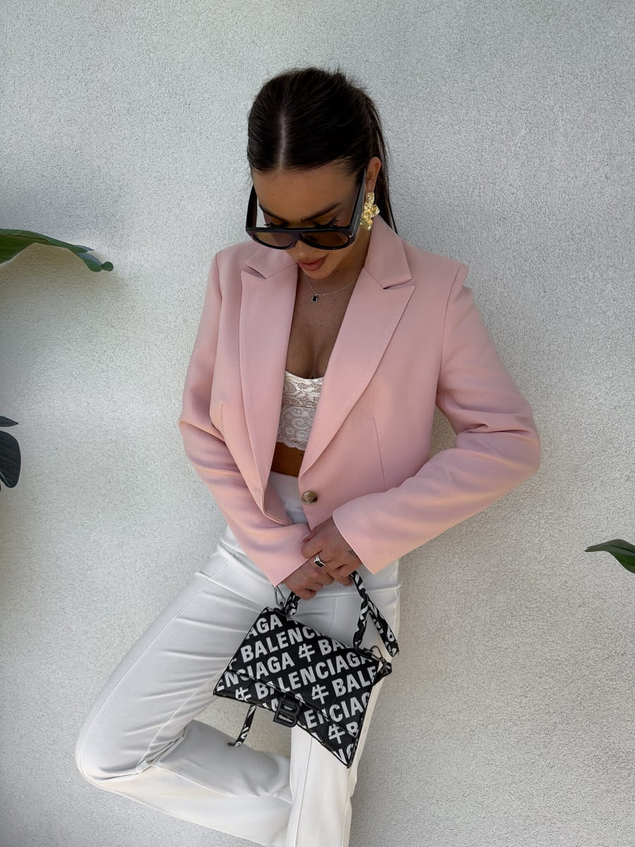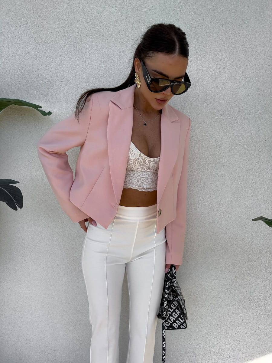 Marynarka o krótkim kroju, gładkie wykończenie. Marynarka posiada podszewkę, zapięcie regulowane przy pomocy guzika.