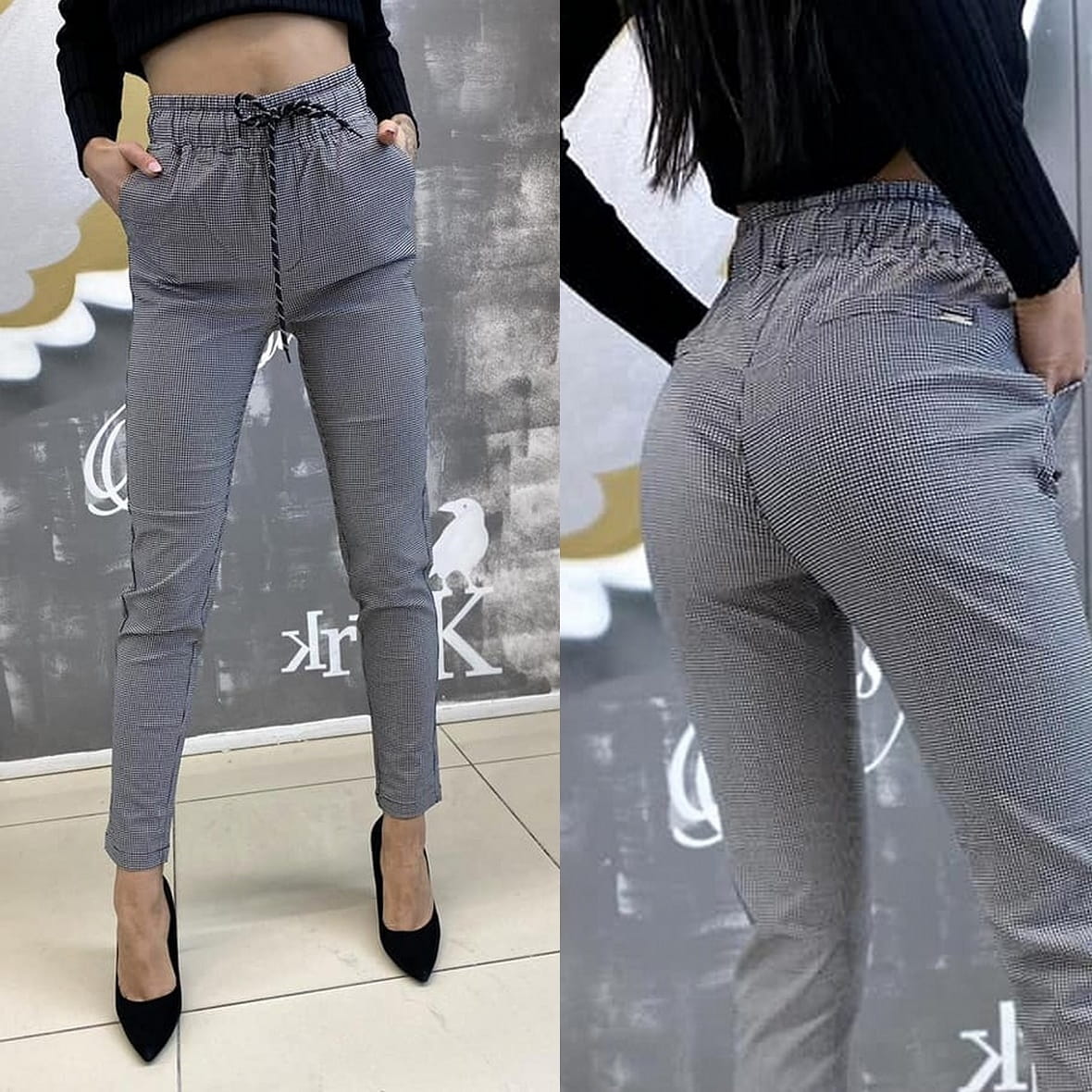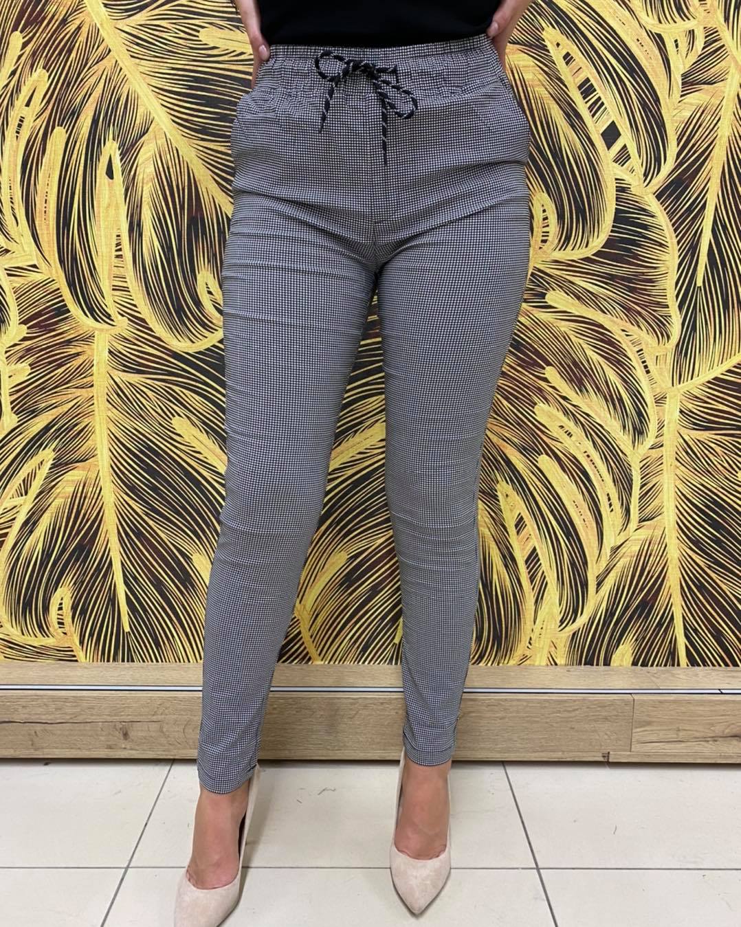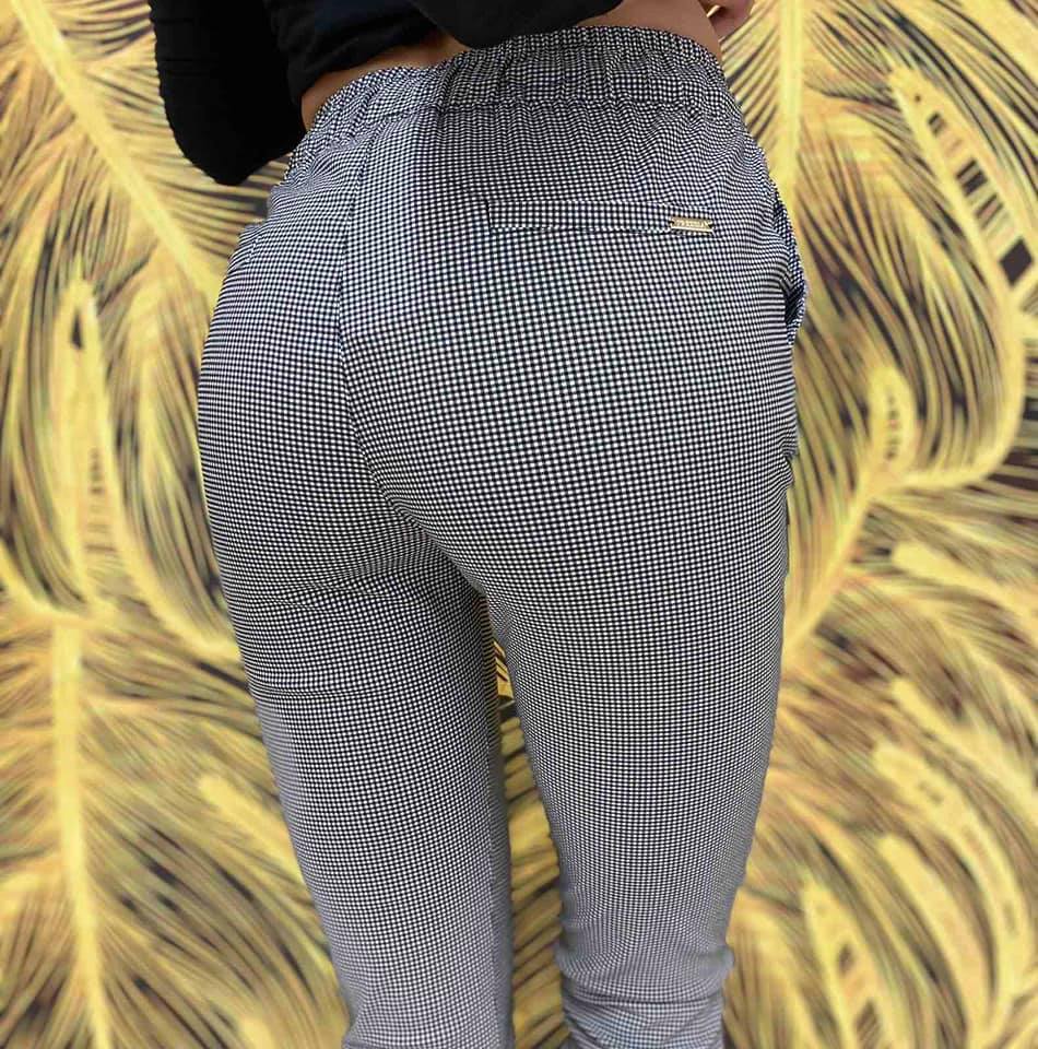 Eleganckie spodnie cygaretki renomowanej marki Freesia w drobną czarno - białą kratkę