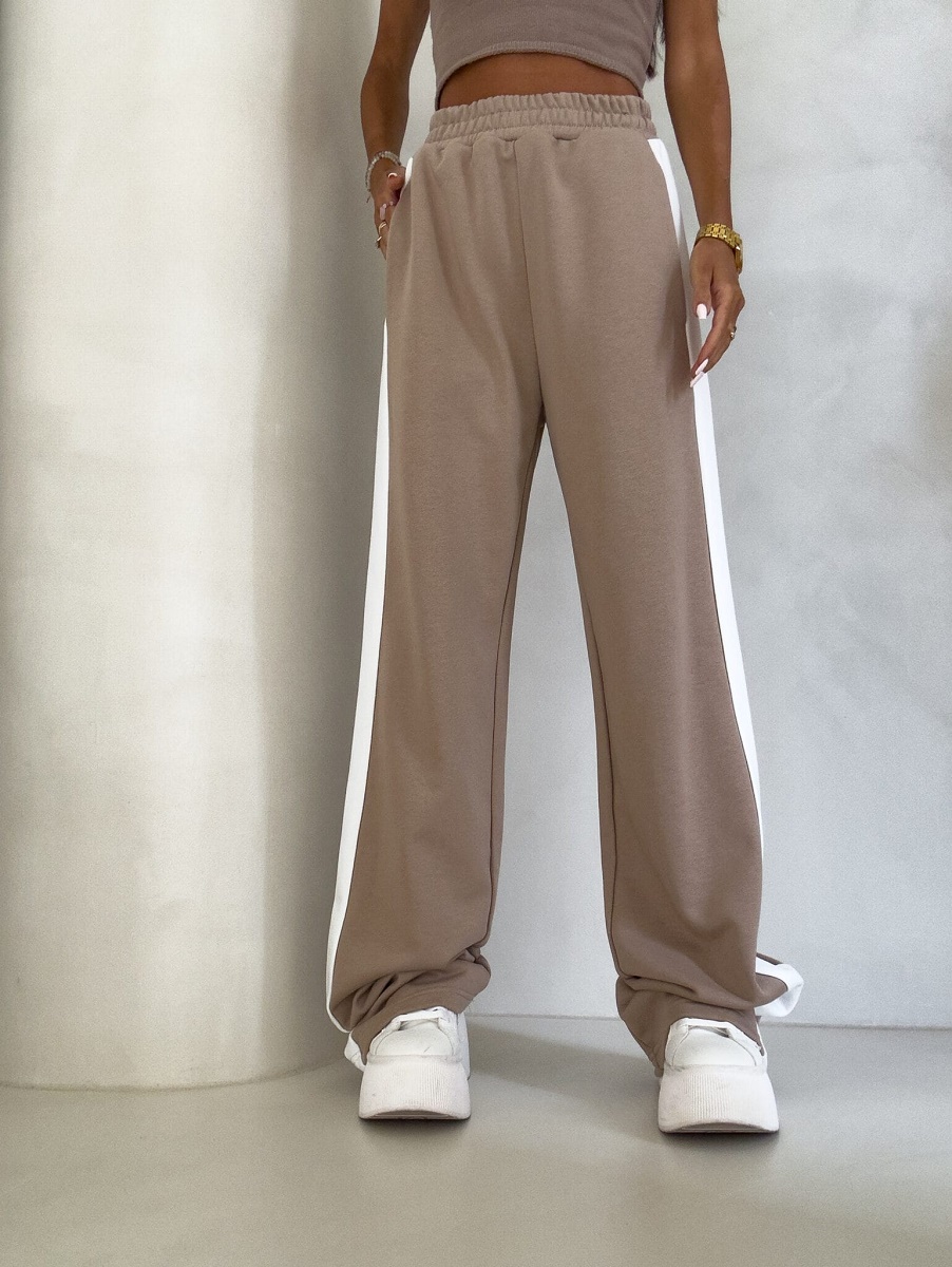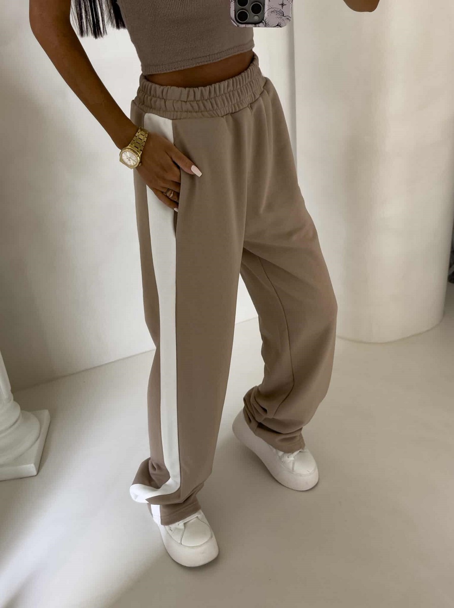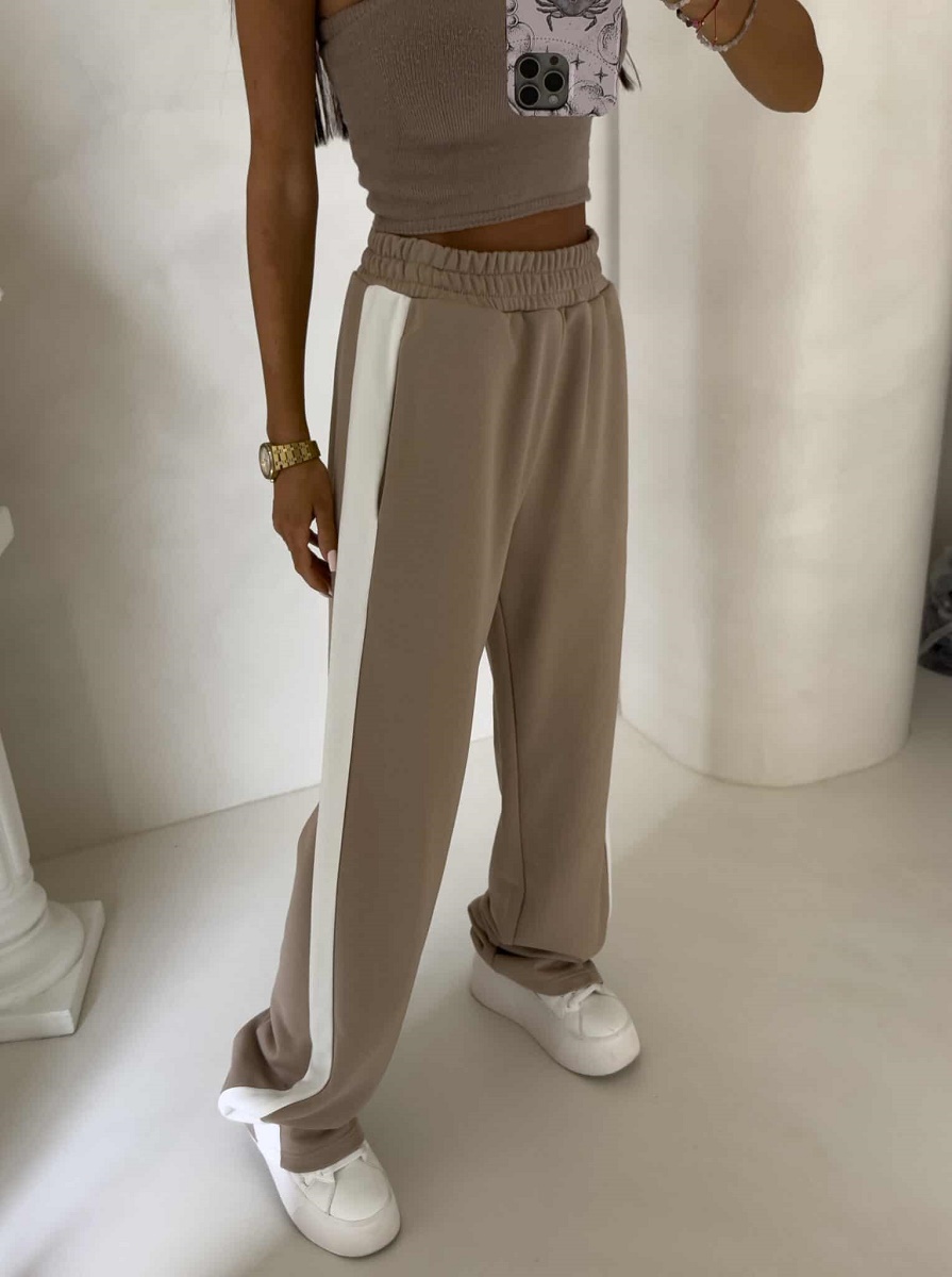 Spodnie dresowe damskie szerokie – bawełniane spodnie z lampasem