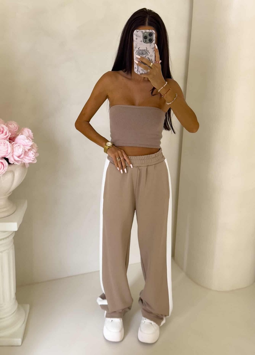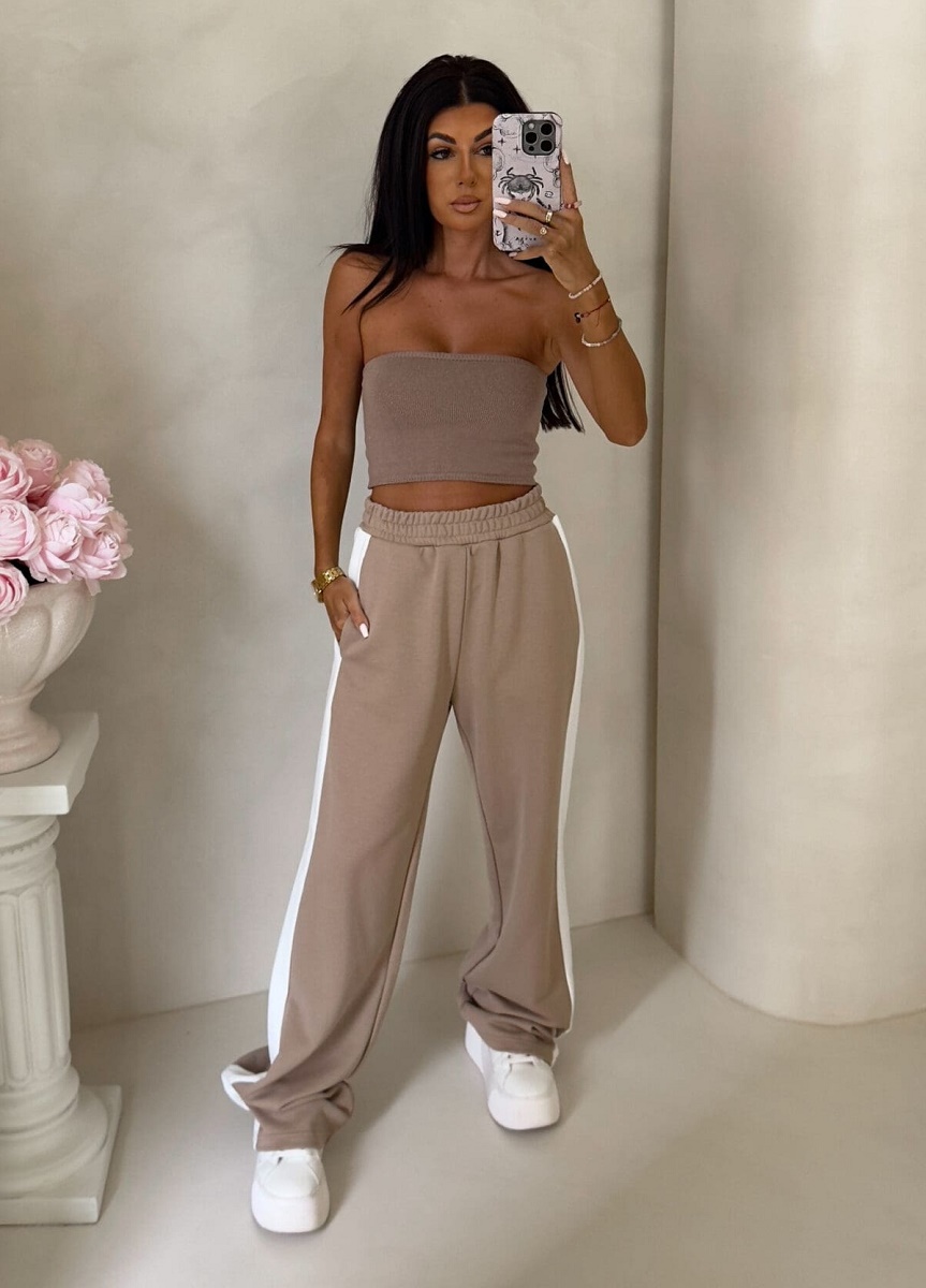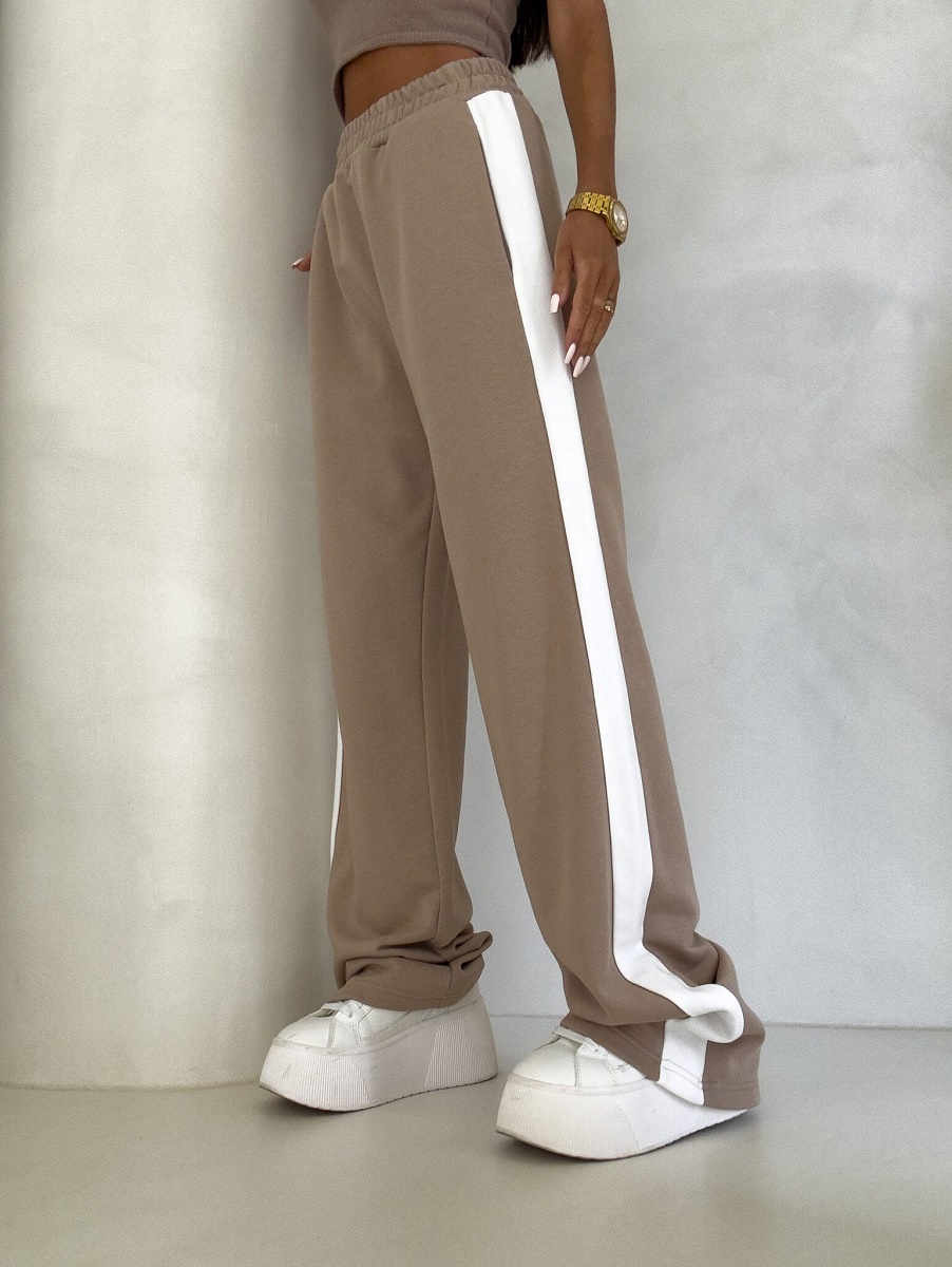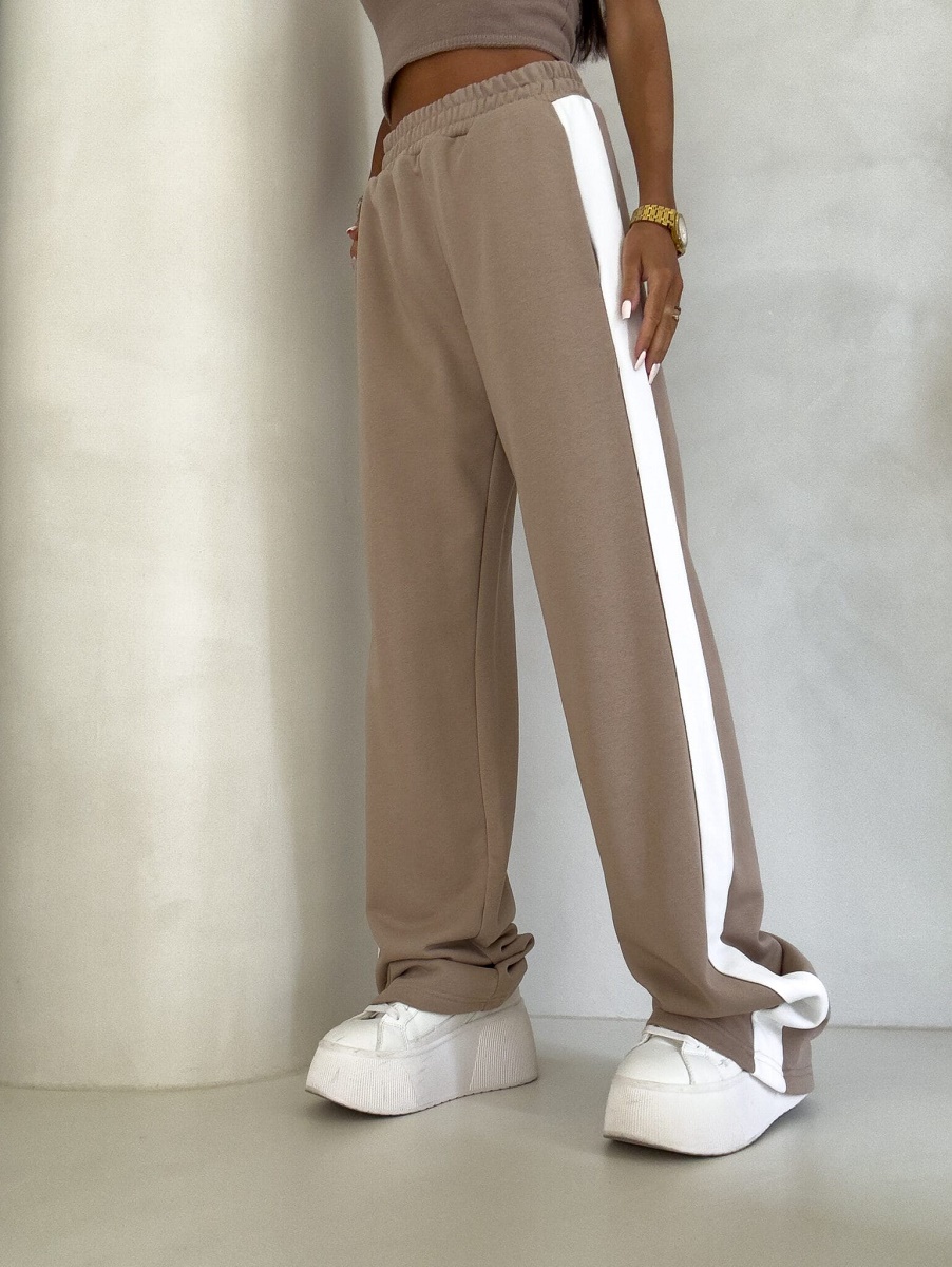 Spodnie dresowe damskie szerokie – bawełniane spodnie z lampasem