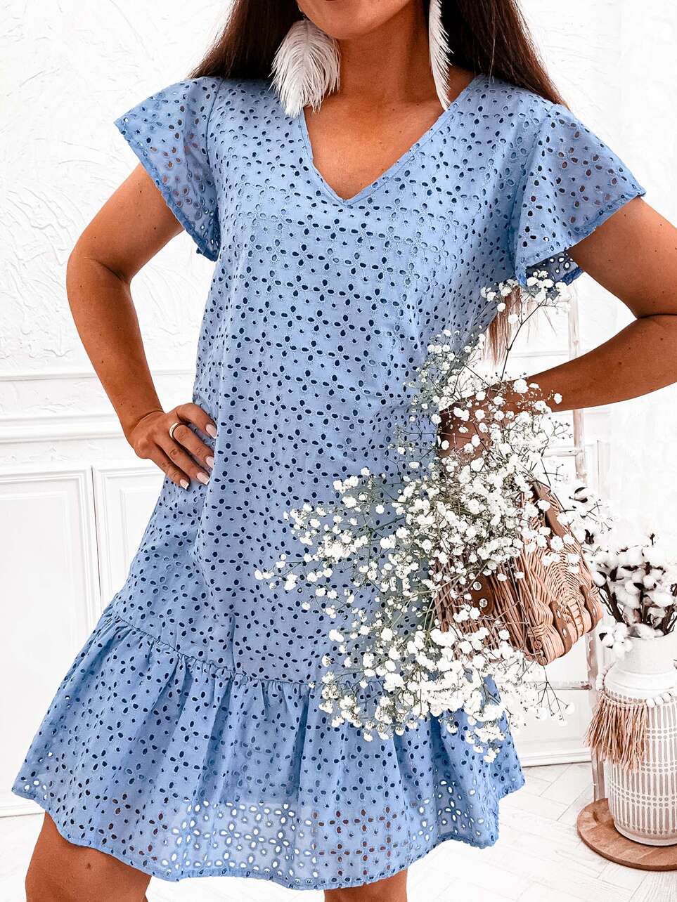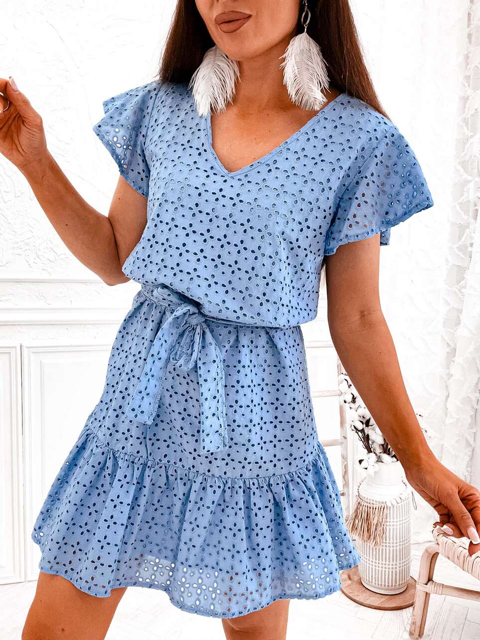 Sukienka ażurowa Lace Glow z paskiem i krótkim rękawem to idealna propozycja na nadchodzące lato.