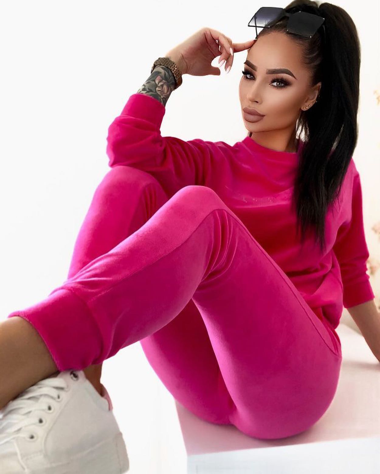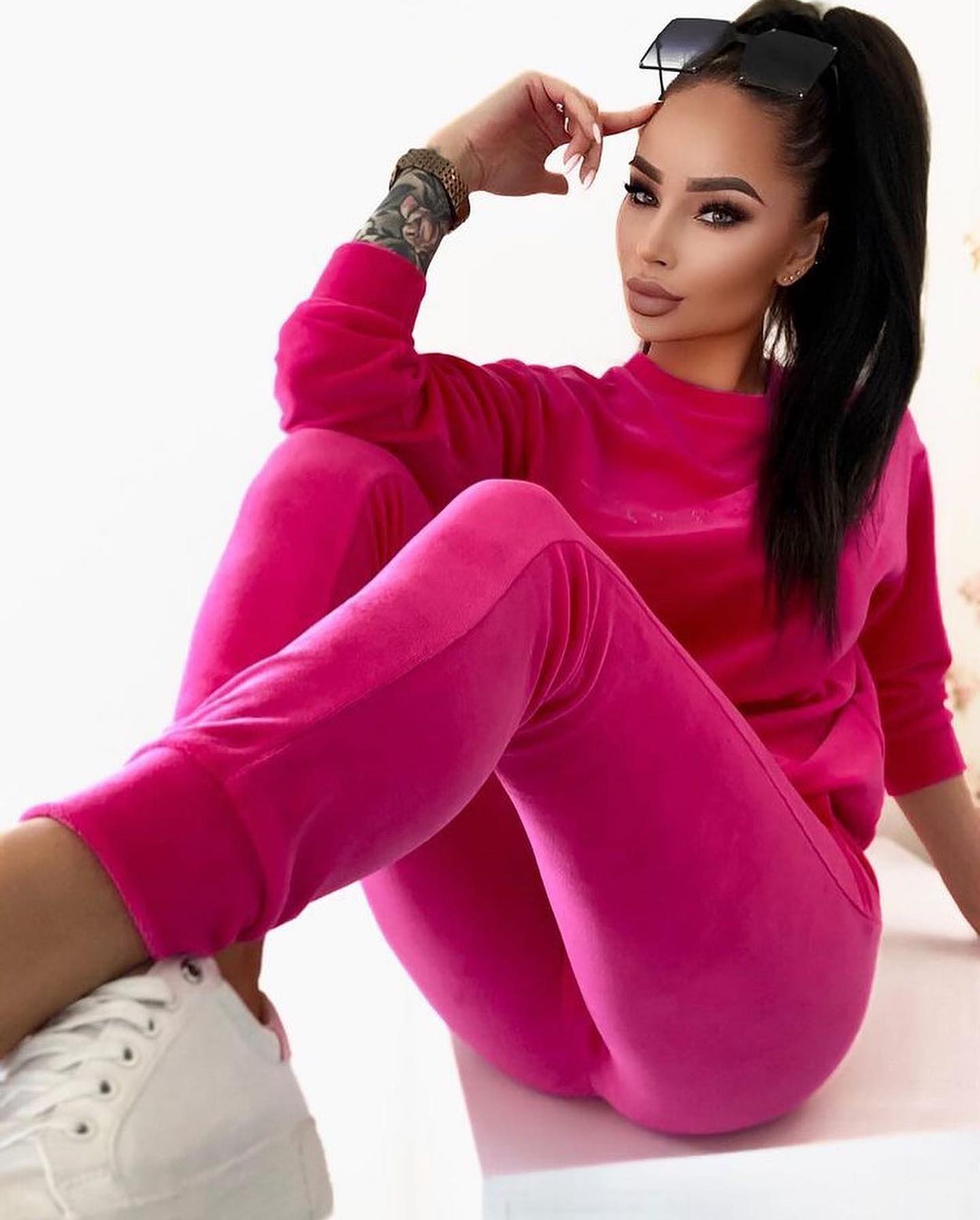 Welurowy komplet dresowy laura rosa różowy